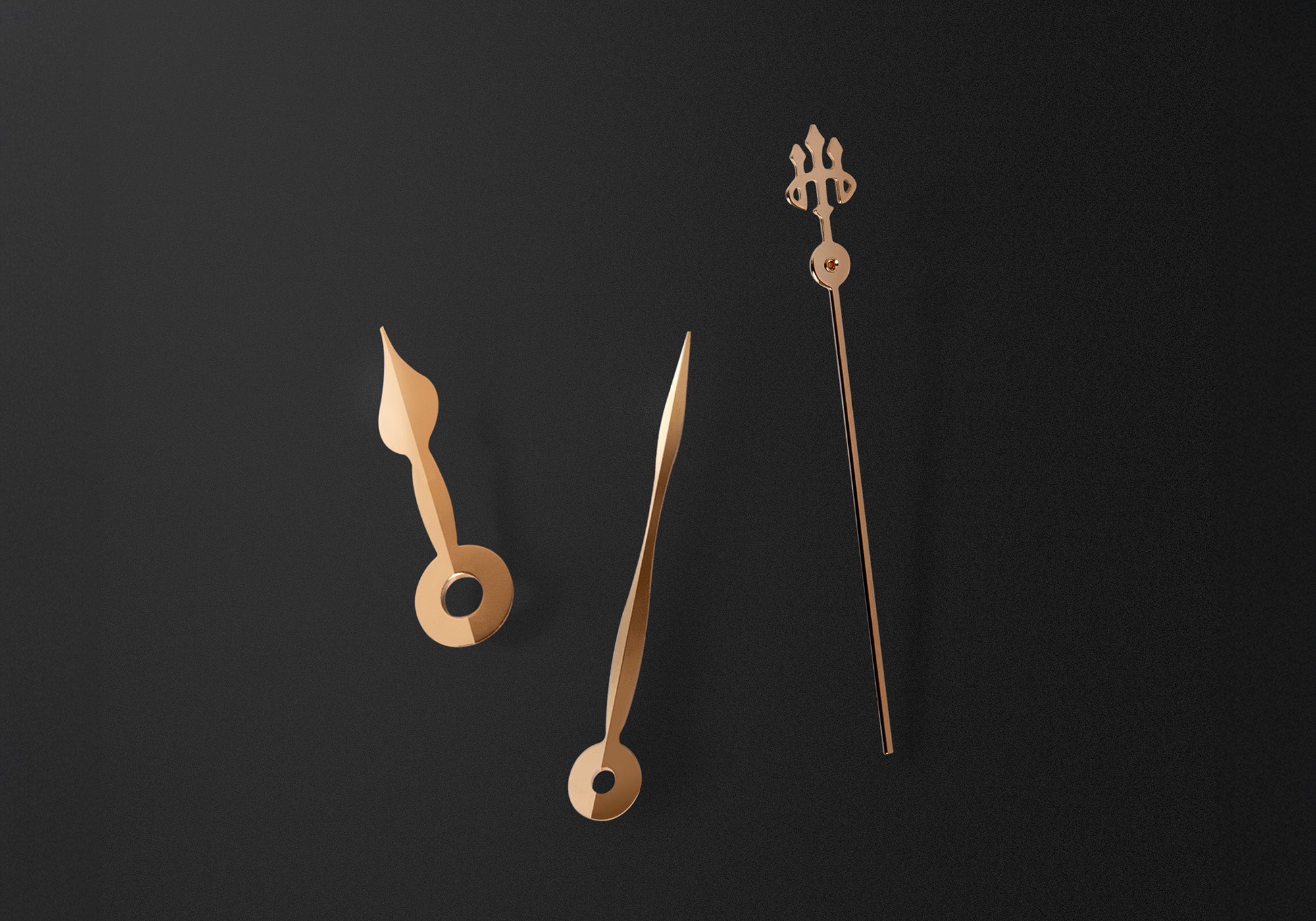 精緻劍桃型錶針經鑽石切割工藝打磨,光華閃耀,彰顯尊貴氣度與高級質感。